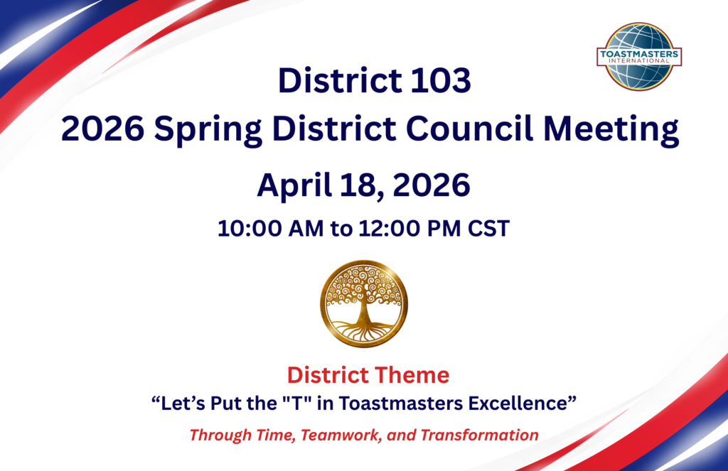 While only voting members may participate in decisions, the 2026 Spring District Closeout Council Meeting is open to all District 103 club members for observation.