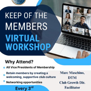🌟 Keeper of the Members: VPM Education Session 🌟 Calling all Vice Presidents Membership! You are the heartbeat of your club’s growth and success. As the Keeper of the Members, your role goes beyond welcoming guests—you are the connection that turns visitors into committed members and keeps your club thriving. District 103 Toastmasters invites you […]