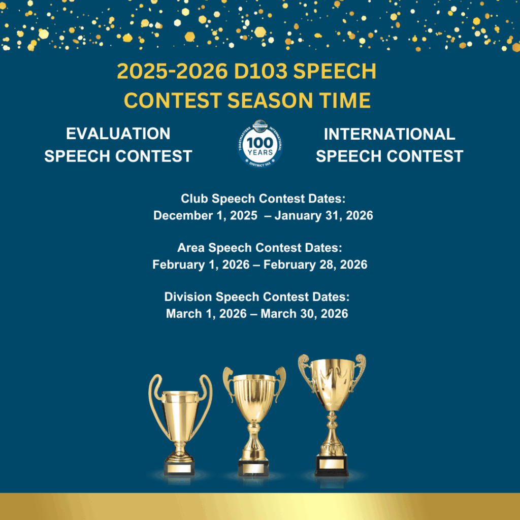 Elevate the game of District 103 Toastmasters speech skills through club contests. By providing the players, both contestants and contest functionaries, with a fair and informed competition to participate in, win, and have fun.