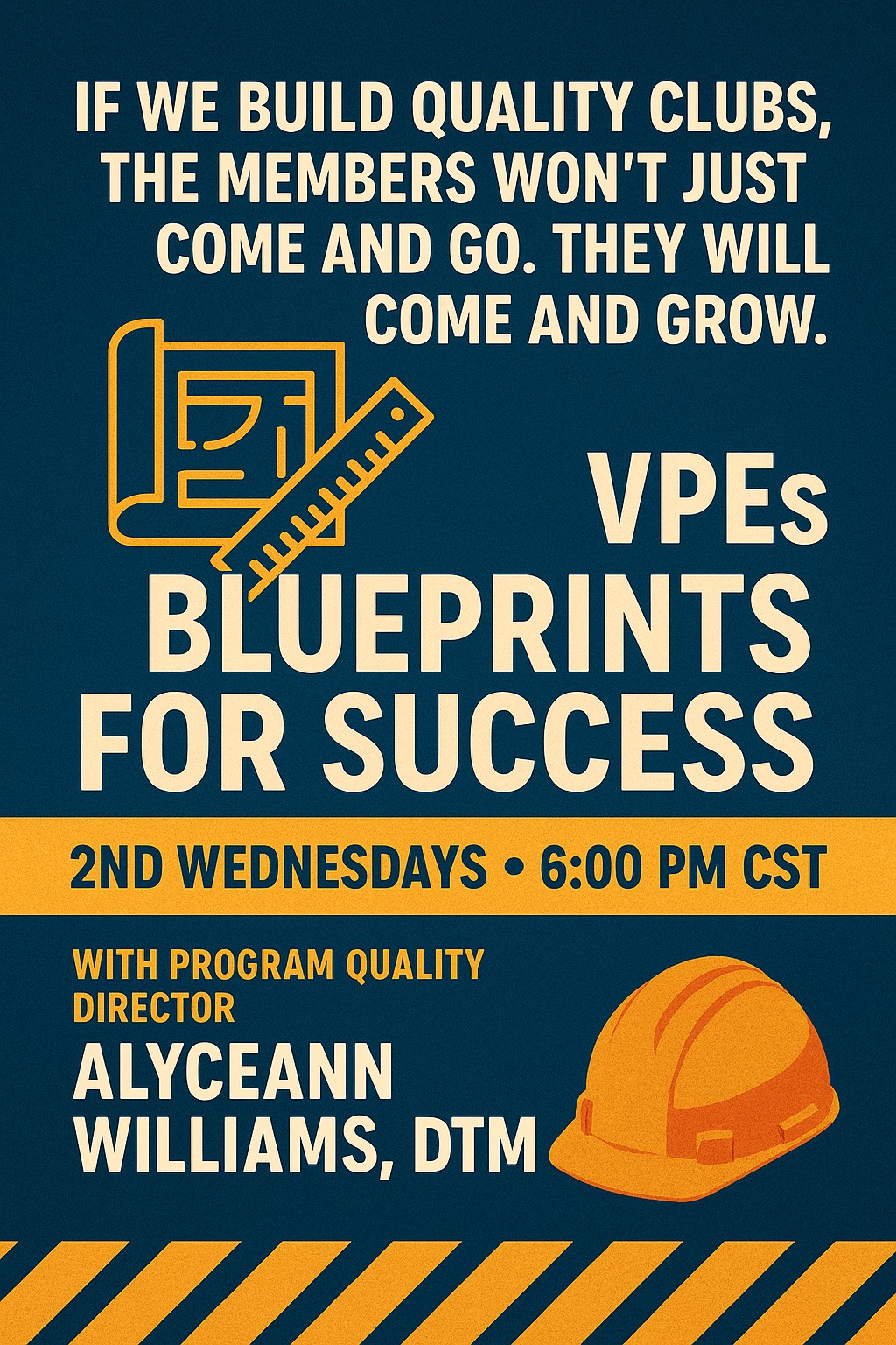 District 103 Toastmasters proudly presents the VPEs Blueprint for Success Education Series, an ongoing professional development experience designed specifically for Vice Presidents of Education who want to strengthen club quality, member engagement, and educational excellence. VPEs and club leaders are invited to attend every second Wednesday at 6:00 PM CST for interactive learning, practical guidance, and leadership development.